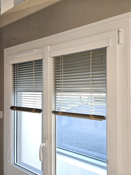 Le store intérieur vénitien, proposé en aluminium, bois ou tissu, permet de moduler la lumière avec finesse, tout en apportant une touche moderne. Pratique, il s'adapte parfaitement à votre intérieur.